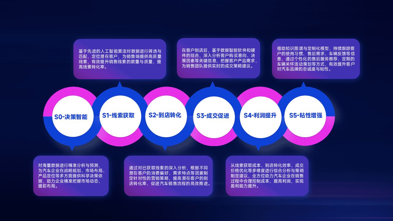 通过拓宽潜在客户来源、、、、优化线索分配并提高到店转化率,,以增强销售效率。。。。同时,,,利用线索数据不断优化分析模型,,,有效提升转化率,,,扩大营销影响力。。。